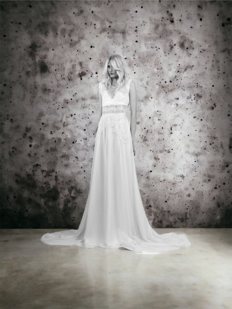 Christine&Joe Bridals pursues excellence in design and irreproachable craftsmanship to create a gown worthy of a bride’s most treasured moments. We believe brides should feel nothing less than gorgeous and unique on their wedding day. Our designs blend rich ethereal fabrics like chiffon and precious laces with transparencies and decadent beading , in addition to the comfort of our patented Christine&Joe construction. The result is amazing unique creations for our unique brides.